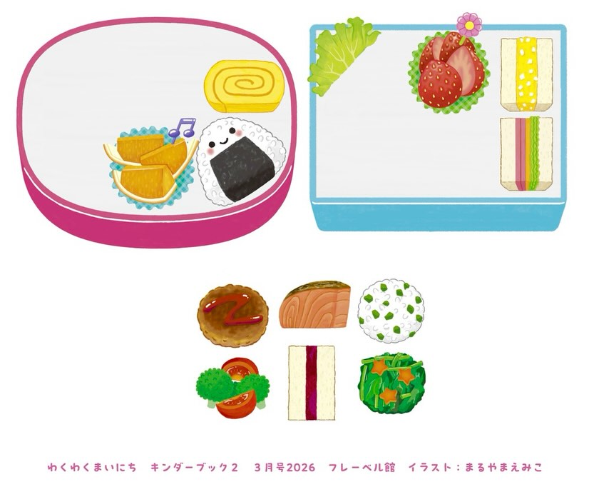 お弁当と、お弁当を完成させるシール、そして草花遊びのイラストを描きました。 食べ物イラストを描くのは大好き。そして草花遊びは子どもの頃、たくさんお友だちと楽しんだ思い出があります!皆さんはどうですか? キンダーブック2 […]