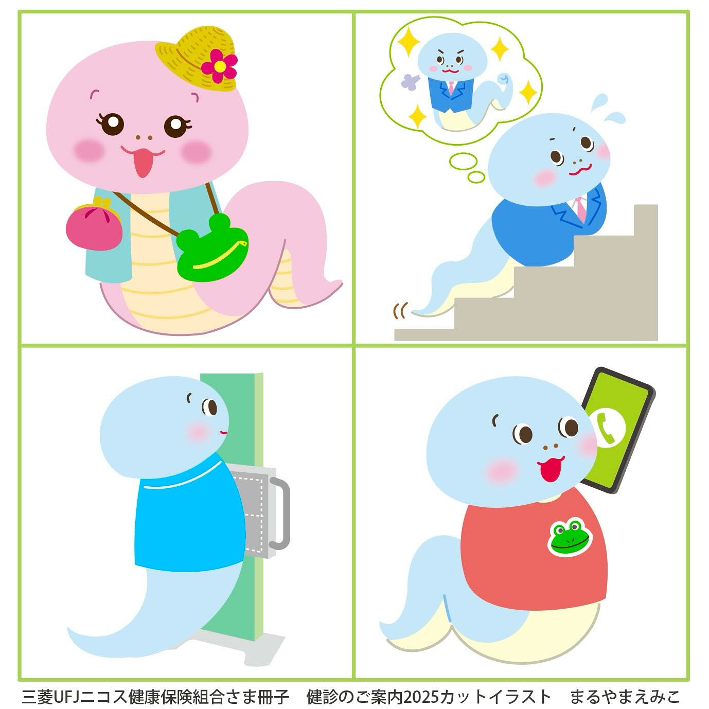 まるやまえみこお仕事情報 公開日:2025年6月13日 会員の活動 こちらの干支キャラクターシリーズ、17年目になりました。 健診結果が少し気になるヘビ男くんです。 三菱UFJニコス健康保険組合機関誌の表紙イラスト・カットイラスト 関連記事 柴山ヒデアキお仕事情報marmelo*お仕事情報さかい蔵人お仕事情報佐藤勝則お仕事情報ありmofu展示会情報柴山ヒデアキお仕事情報 投稿ナビゲーション ウシヤマアユミお仕事情報佐藤勝則お仕事情報